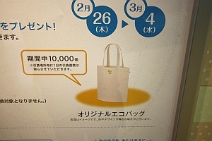 1周年の方は記念TOICAの販売。新規購入キャンペーンでは「オリジナルエコバッグ」をプレゼントの事