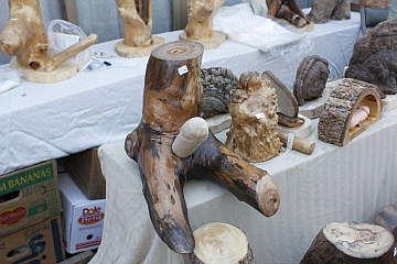 路上ではち○こを象った木彫りの置物が売られています。とても卑猥!